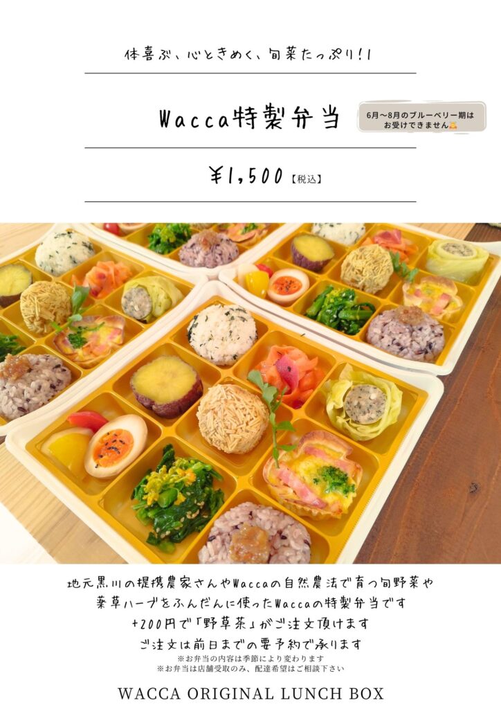 スィーツやドリンクの他、三重県産減農薬コシヒカリ新米で炊いた自慢のおにぎりや旬菜にドリンクがセットになった数量限定のWaccaランチ、ブルーベリーと自家製ベーコンのピザ、タンドリーチキンラップなど、こだわりランチも提供しています♪